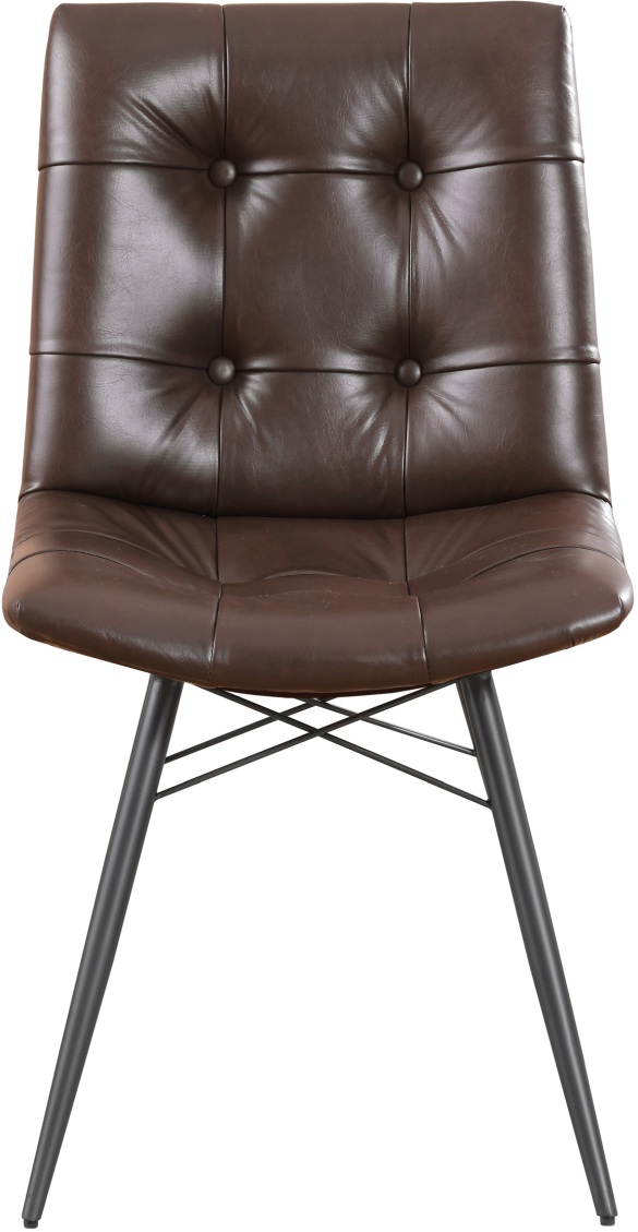 Looking to add some style to your dining room? Look no further than this charming, leatherette side chair. The beautiful brown upholstery adds warmth to a room. Decorative button tufting adds a trendy yet tasteful touch. Complete with sleek, angled legs in a gunmetal finish, this chair has a mid-century modern feel that enlivens any space.
