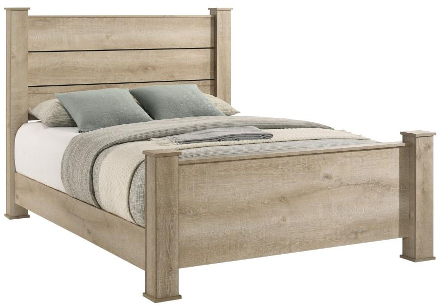 Transitional eastern king bed frame with horizontal planked headboard for rustic charm