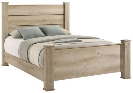 This transitional bed frame combines rustic charm and modern design with its horizontal planked headboard and clean silhouette. Finished in weathered oak, it is made from engineered wood with a scratch-resistant, eco-friendly veneer for enhanced durability. Sturdy column-style legs provide stability and timeless appeal.Read More